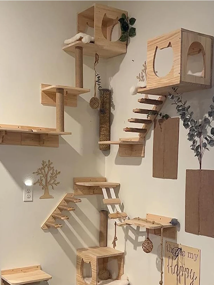 The wall-mounted design saves space in your room and is very suitable for climbing, sleeping and exercising. Suitable for cats of all ages.